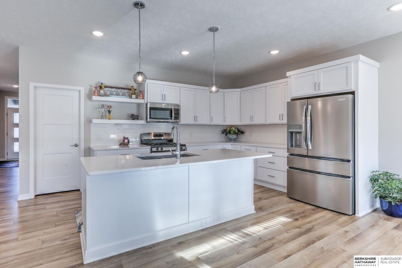Searching for a ranch home in Omaha with modern updates, functional space & prime location? Located in the Gretna School District, it was quality built by Story homes & is the pride of ownership throughout. The open interior offers abundant natural light, spacious living areas & a layout ideal for today's lifestyle. The kitchen stands out with quartz counters, extensive cabinetry, walk-in pantry & generous dining space. Fall in love with the main level primary suite with its spa-like bath, soaking tub, tiled shower & huge walk-in closet. The finished basement it a hot spot with a large rec room, ample storage and dedicated sauna room - a rare opportunity for an in-home wellness retreat. Enjoy the flat, fully fenced backyard with new composite deck & refreshed landscaping for quiet evenings at home. Located near shopping, dining, parks & with convenient access to commuting routes, it is sure to impress. A standout opportunity for anyone searching for a move-in ready ranch home.